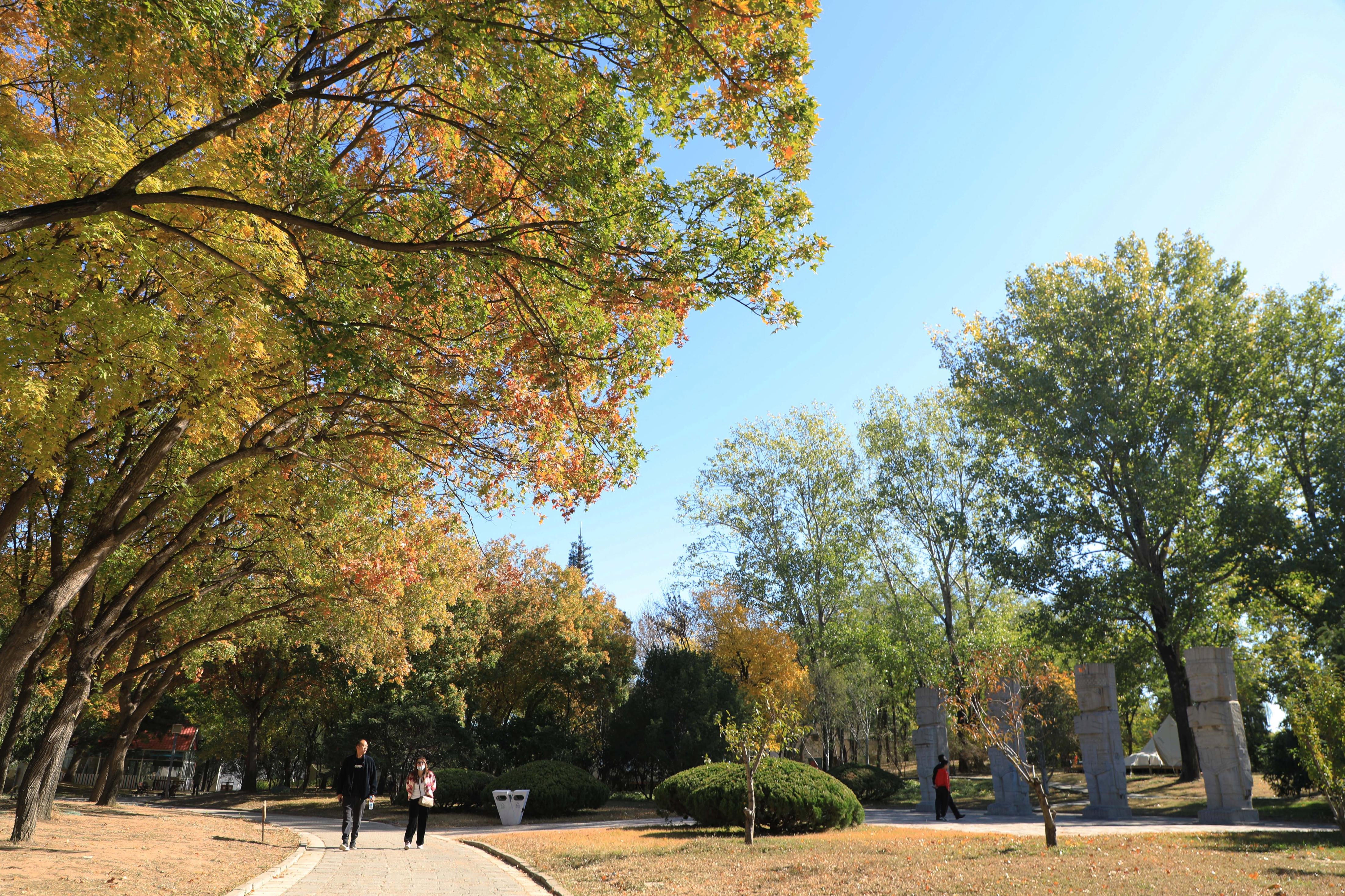 金秋十月,世界公园迎来了游园赏景的好时节。特别是霜降节气后,世界公园层林浸染、秋意正浓。银杏、 红枫、元宝枫、黄栌、白蜡、金银木、海棠等彩叶挂果树木五彩斑斓,美不胜收。而位于公园美洲区的枫树林、非洲区的银杏林、欧洲区的白蜡树与世界公园精美的微缩景观完美地融合在一起,步移景异,意境悠远。