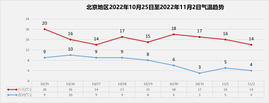 北京市气象台消息,10月24日白天晴,北转南风二三级,最高气温20℃;夜间晴间多云,南转北风一二级,最低气温6℃。