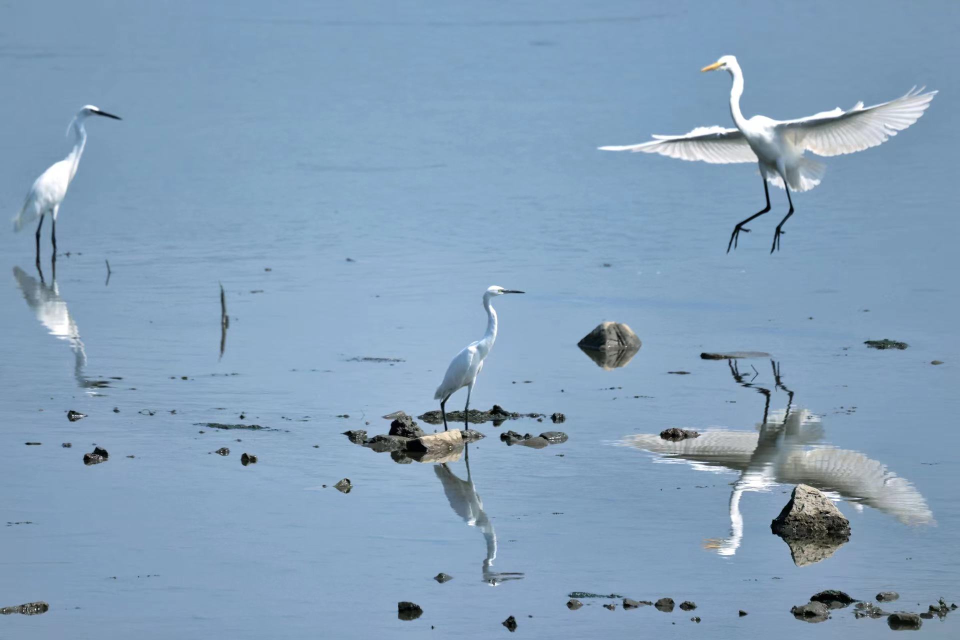 越来越多的“飞行上宾”,将山清水秀的北京当作理想栖息之所。据北京青年报报道,在拒马河六渡的河湖鸟类自动监测站,市水务局水质水生态监测中心近日首次拍摄到4只黑鹳同框;在大宁调蓄水库东部浅滩,也观测到大量水鸟栖息,其中首次一次性观测到十余只黑鹳。