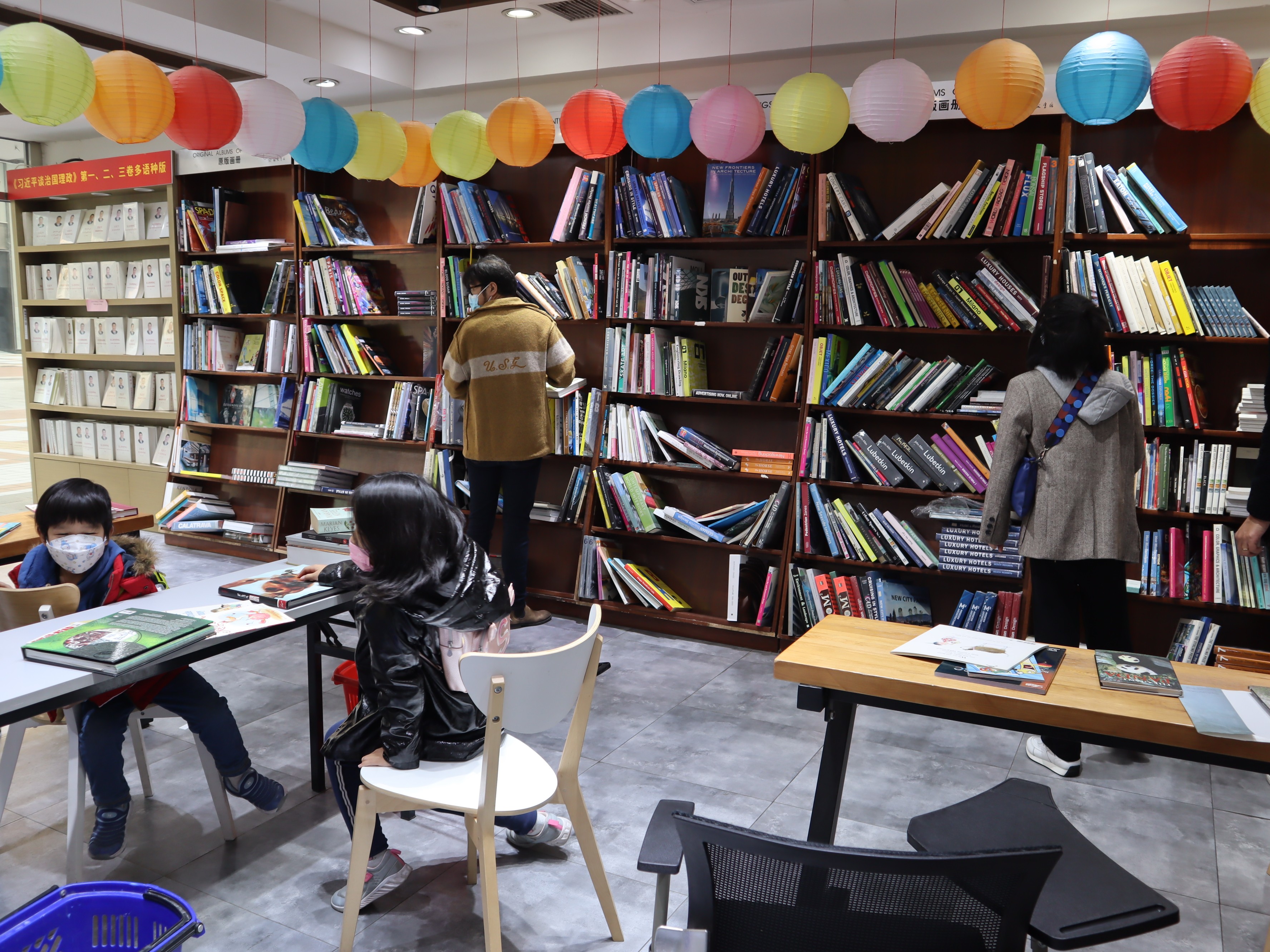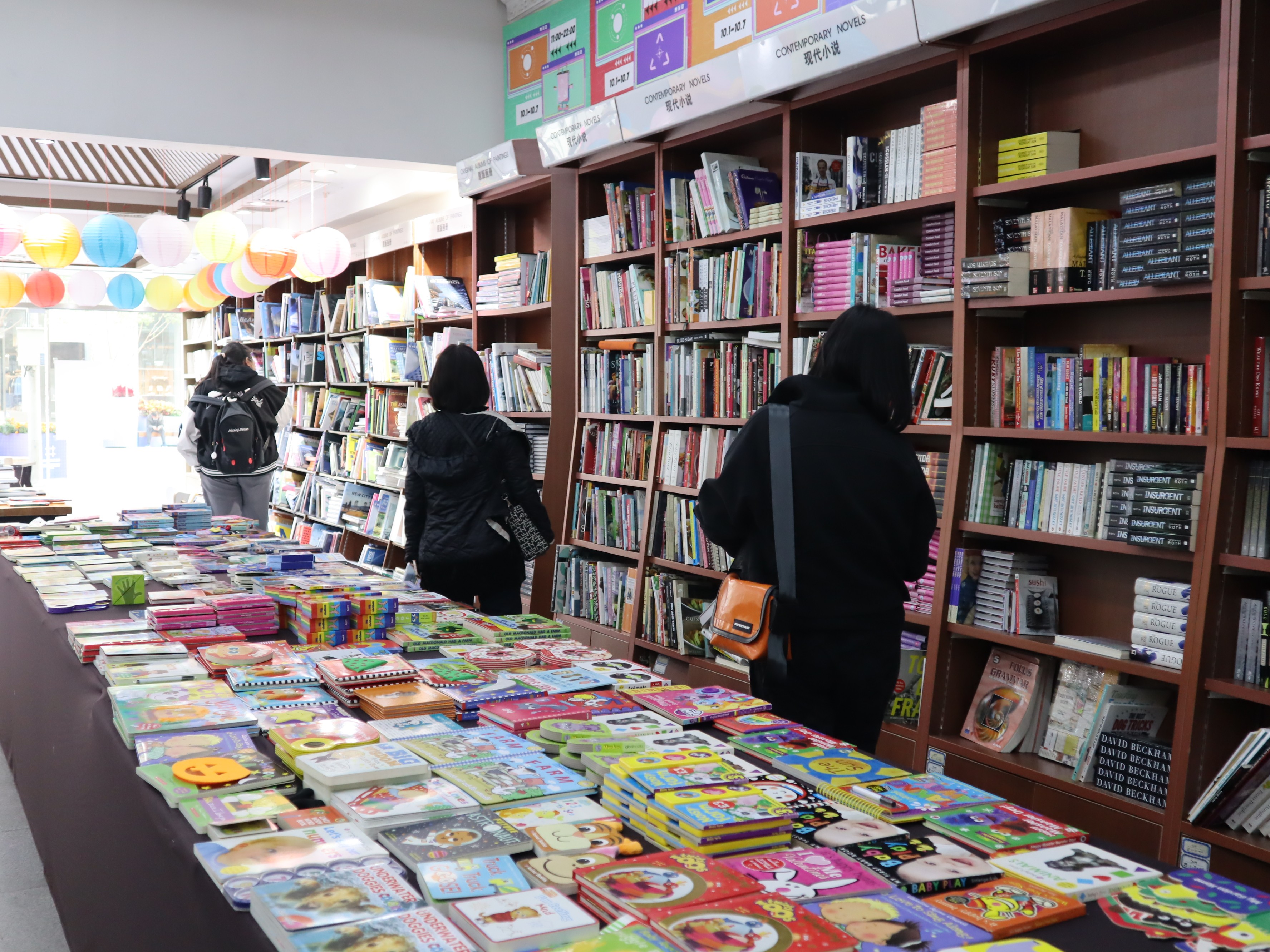 10月25日下午,记者走进位于王府井大街北端的外文书店,看到店内的原版画册、儿童绘本、进口CD等琳琅满目,其中现代小说最受读者欢迎,进口原版图书特价展区也让很多人流连忘返。不少读者一进门,便来到收银台旁轻车熟路地拉起购物篮或购物车。货架前,有的顾客正在认真挑选图书,有的人则一本本地扫码查价,一些读者选择坐在阅读区安静地看书,收银台前也不断有顾客抱着书本结账。