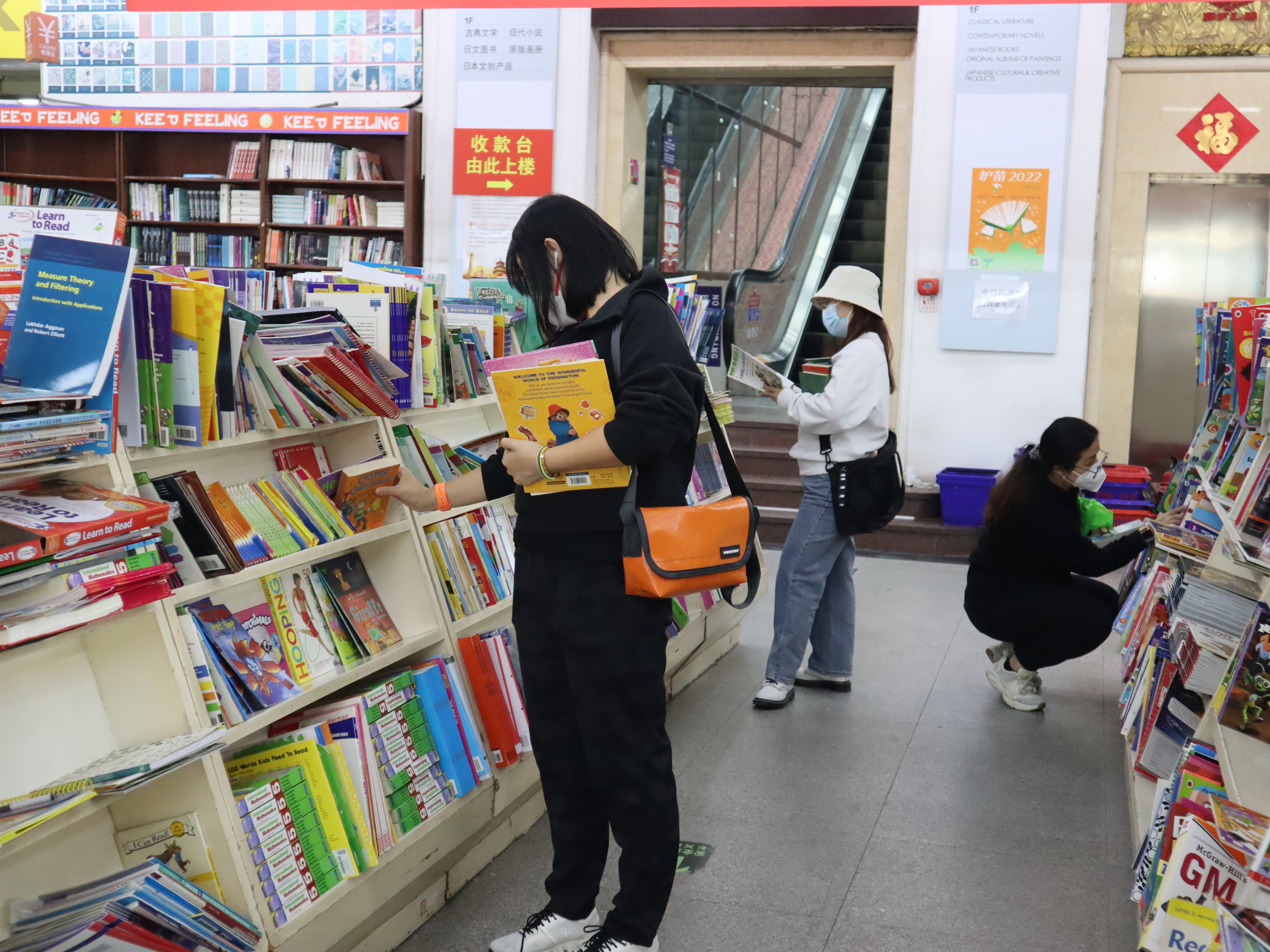 北京外文书店创办于1958年,距今已有六十多年历史,在网络购物出现以前,它曾是很多人外语学习的“启蒙书店”。记者看到店内的顾客有年轻人、有老年人,还有很多家长带着小朋友前来淘书。“小时候是父母带我来的,现在我是带着孩子一起来的,今天在这里买了很多本书,以此纪念自己被外文书店哺育的青春。”逛了一个小时左右,“80后”刘女士的购物筐已经被绘本和画册堆满,她的孩子正坐在椅子上津津有味地读着儿童绘本。“四折的优惠力度很大,很多书比网购还便宜,我很享受淘书的感觉。”英语专业的“90后”李先生说。