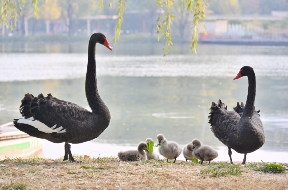 10月17日,最后一只天鹅雏鸟破壳而出,五只小天鹅全部孵化成功。没过几天,黑天鹅“夫妇”便带着小天鹅出门“见世面”。“天鹅的孵化成功率大概在50%左右。但这次达到了100%,不管对游客还是工作人员来说,都是一件值得高兴的事。”公园绿化保洁党支部书记王静说。