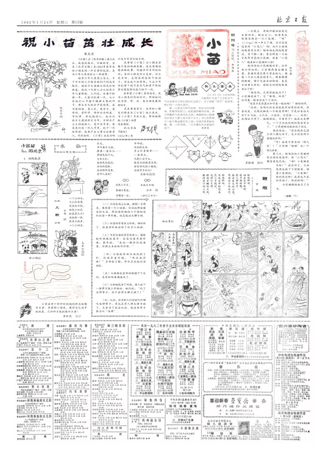 虽然叫《小苗》,年龄可不小。说起《小苗》的历史,很多老作者、老读者并不陌生。1982年1月24日,北京日报《小苗》专刊创刊。当年,专门为少年儿童开辟专版,这在当时全国的省级党报中还是一个创举。