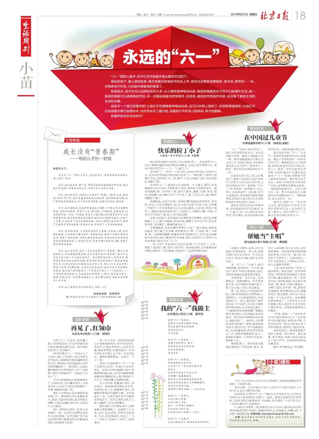 《小苗》周刊长期征集北京市中小学生的优秀习作,欢迎大家来稿。