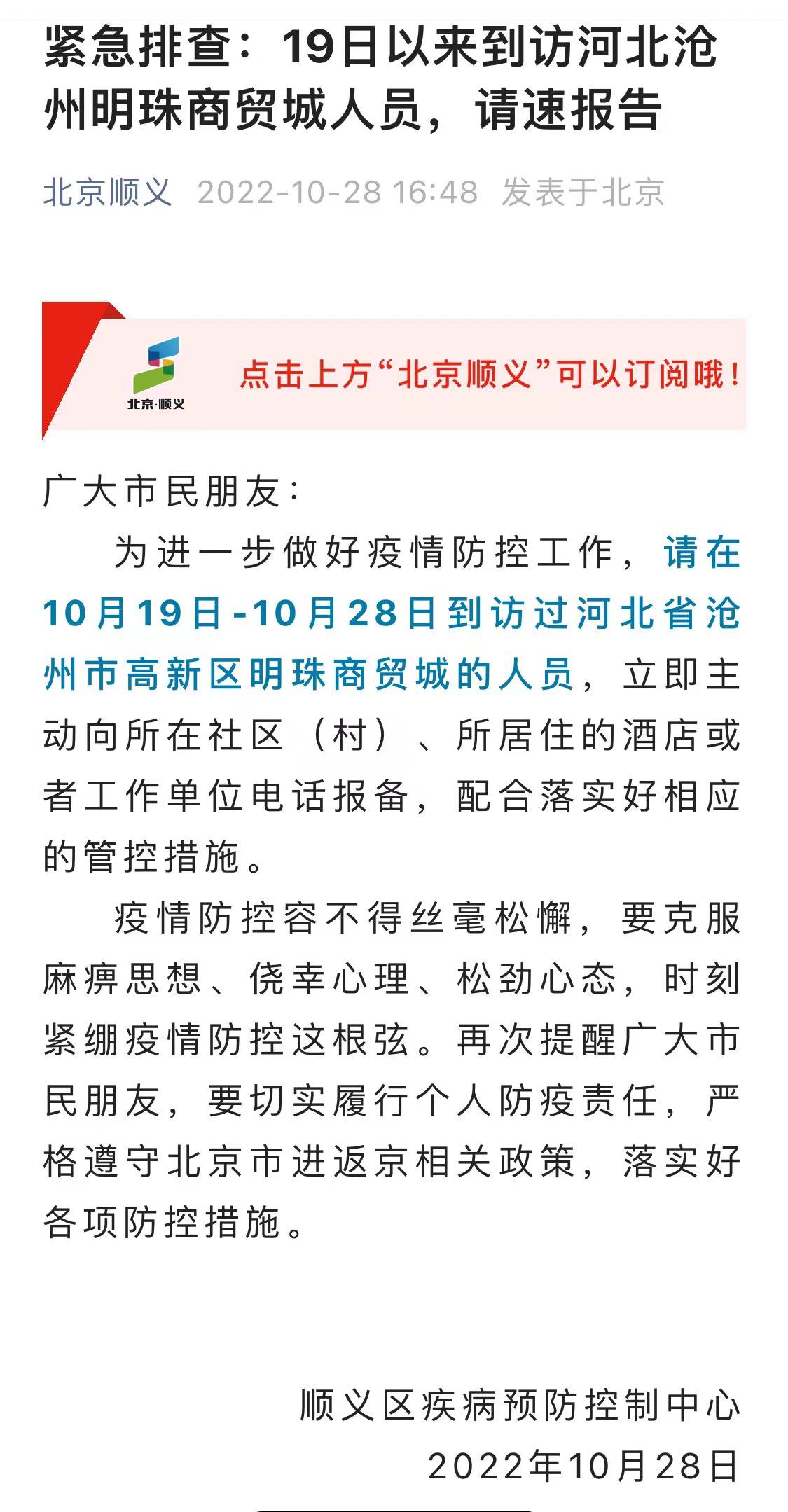 紧急排查:19日以来到访河北沧州明珠商贸城人员,请速报告