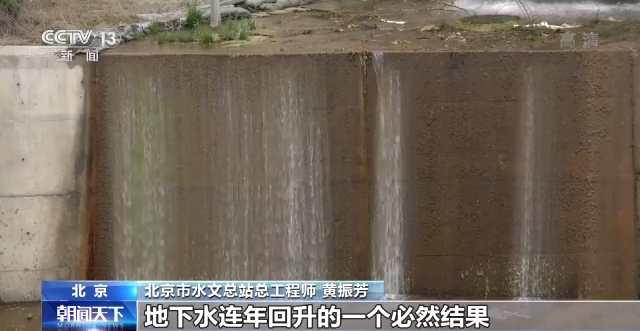 北京市水文总站总工程师黄振芳:这个泉水实际上是地下水回补地表水的一个出露点,泉水复涌反映了地下水连年回升的必然结果。