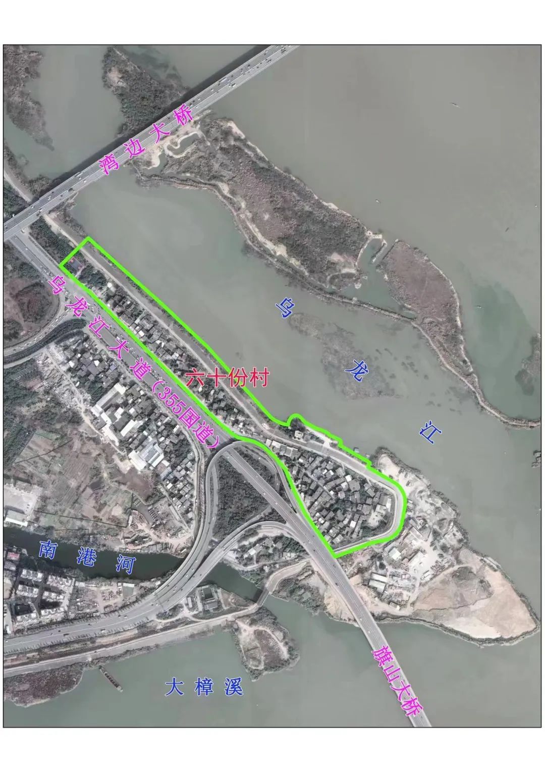 东至乌龙江、南至大樟溪、西至乌龙江大道(355国道)、北至湾边大桥(六十份洲右转匝道)