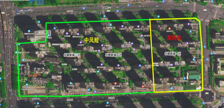 1.将24号通告中划定的的中风险区岳峰新城一区调整为高风险区,其余岳峰新城二区、岳峰新城三区、时代春秋等小区维持中风险区不变。