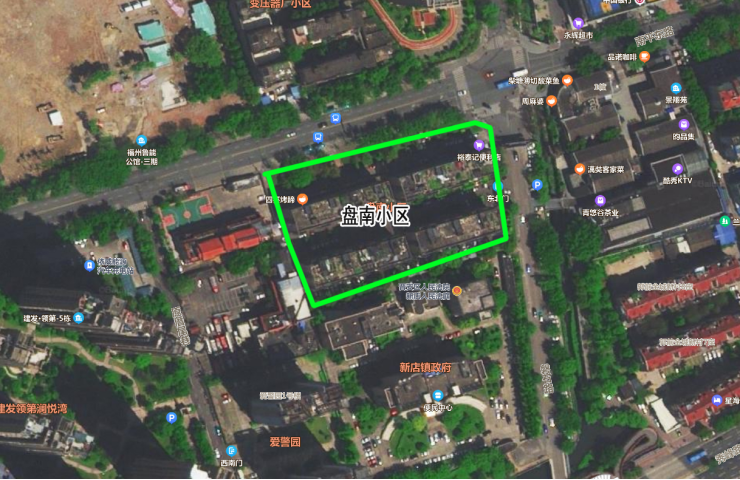 东至磐石路,西至新店消防救援站,南至新店镇人民调解中心北侧,北至南平东路的合围区域(盘南小区)。