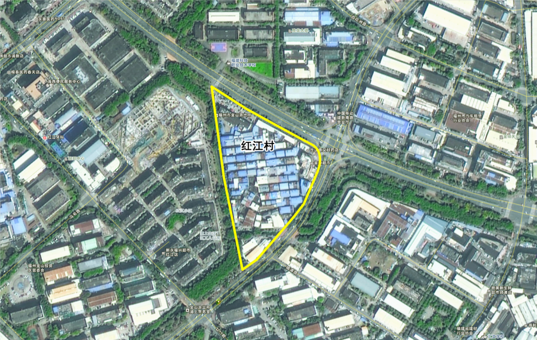 东至杨周路,西至红江小区,北至建新南路的合围区域(红江村)。