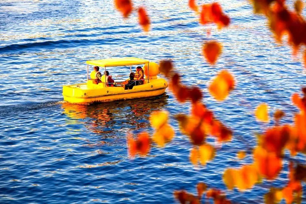 天高云淡,湖面微波,层林尽染,每一处的色彩都恰到好处,不用刻意寻找,低眉抬眼,猝不及防,便陶醉于这充满秋意的景色中。