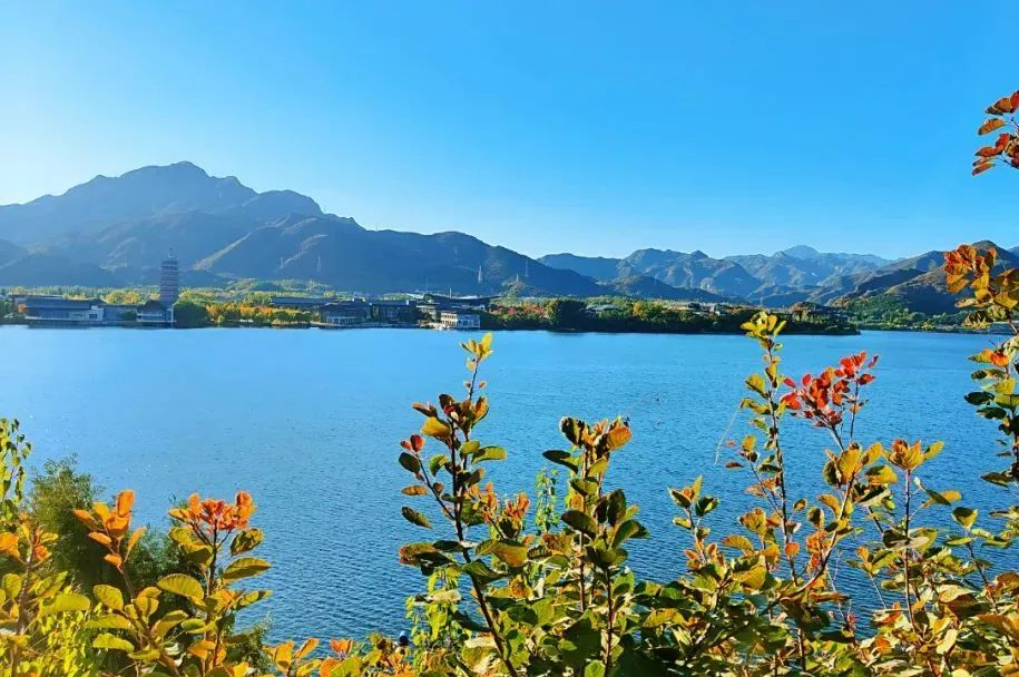 平静的湖水、如黛的远山、古朴恢宏的建筑,浓重的秋意把雁栖湖熏染得如诗如画,勾勒出一幅浓烈的美丽画卷。刹那间秋天已然到来,时间飞快,仿佛炎热夏日就在昨天,一切不经意间的变化,都是大自然给予的馈赠。