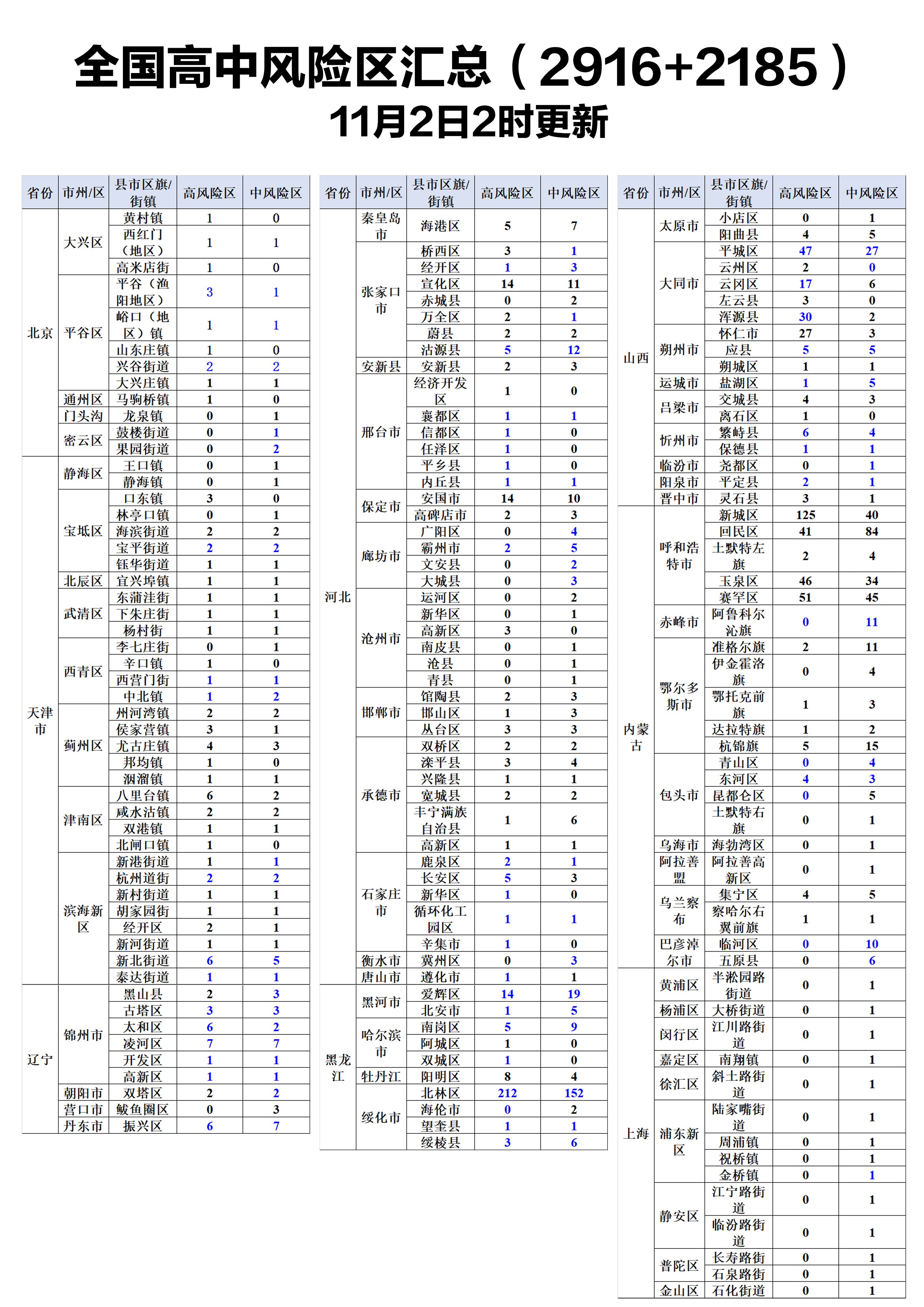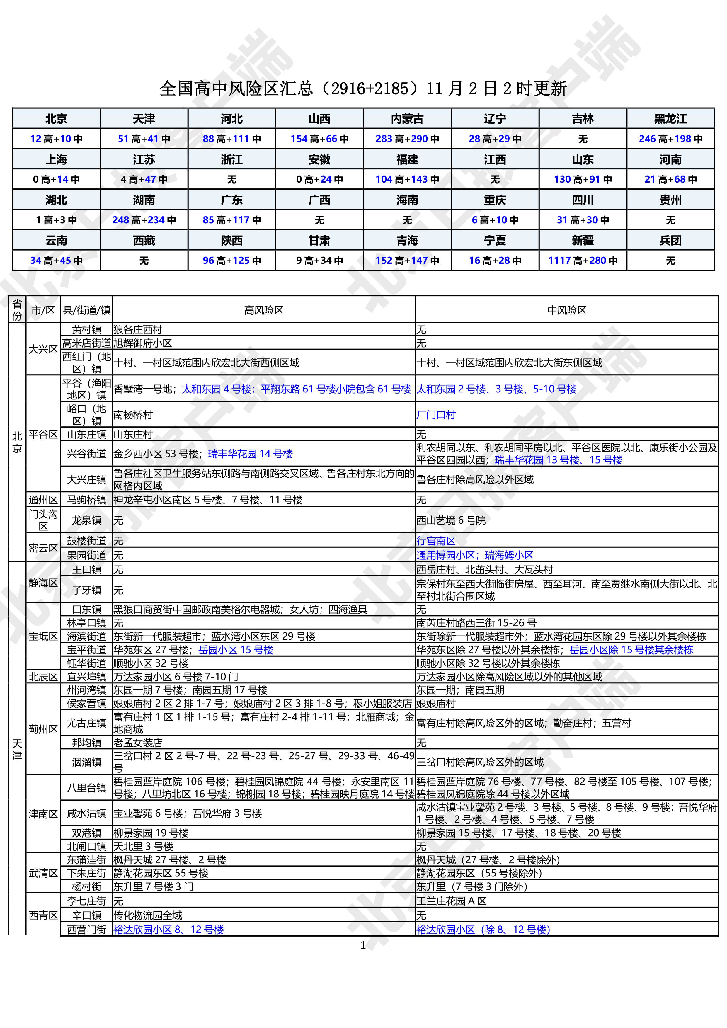 下载打印版丨全国高中风险区汇总(11月2日2时更新)