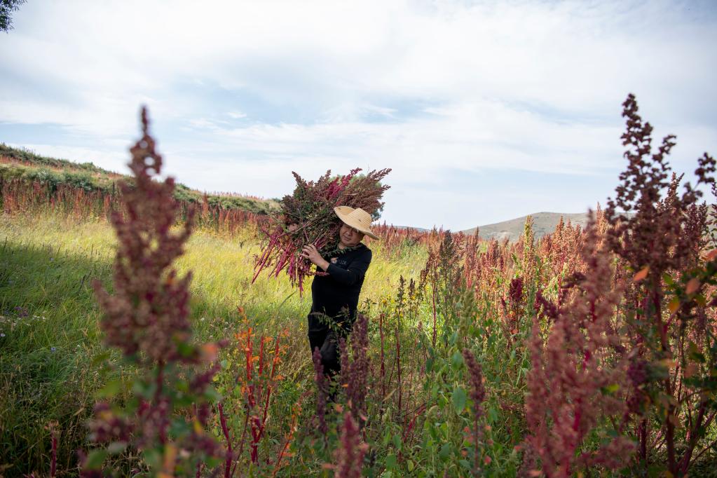 忻州市静乐县的农田里,村民在搬运藜麦。(新华社记者杨晨光 摄)