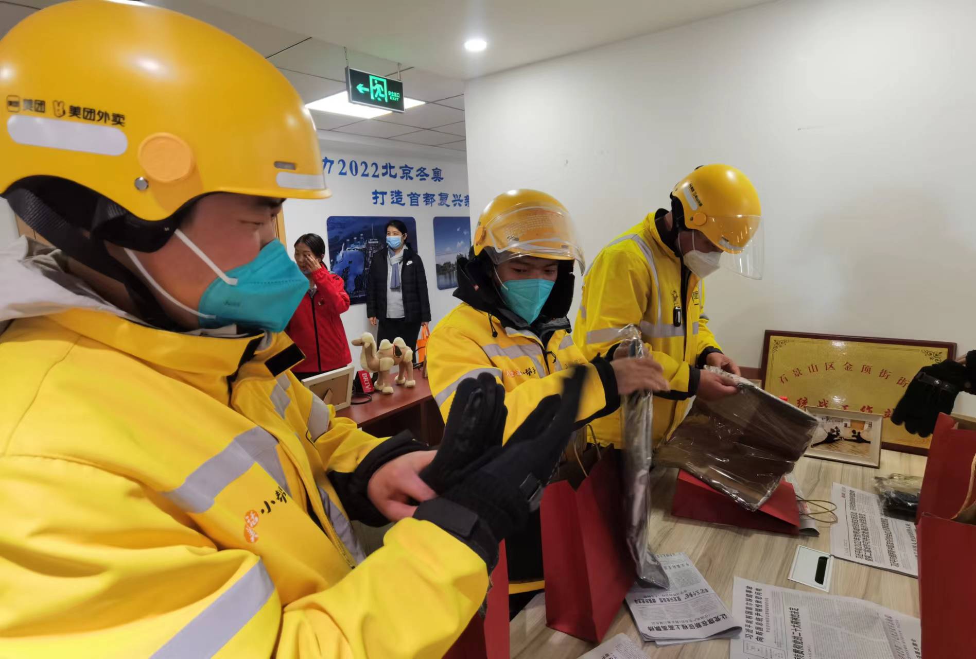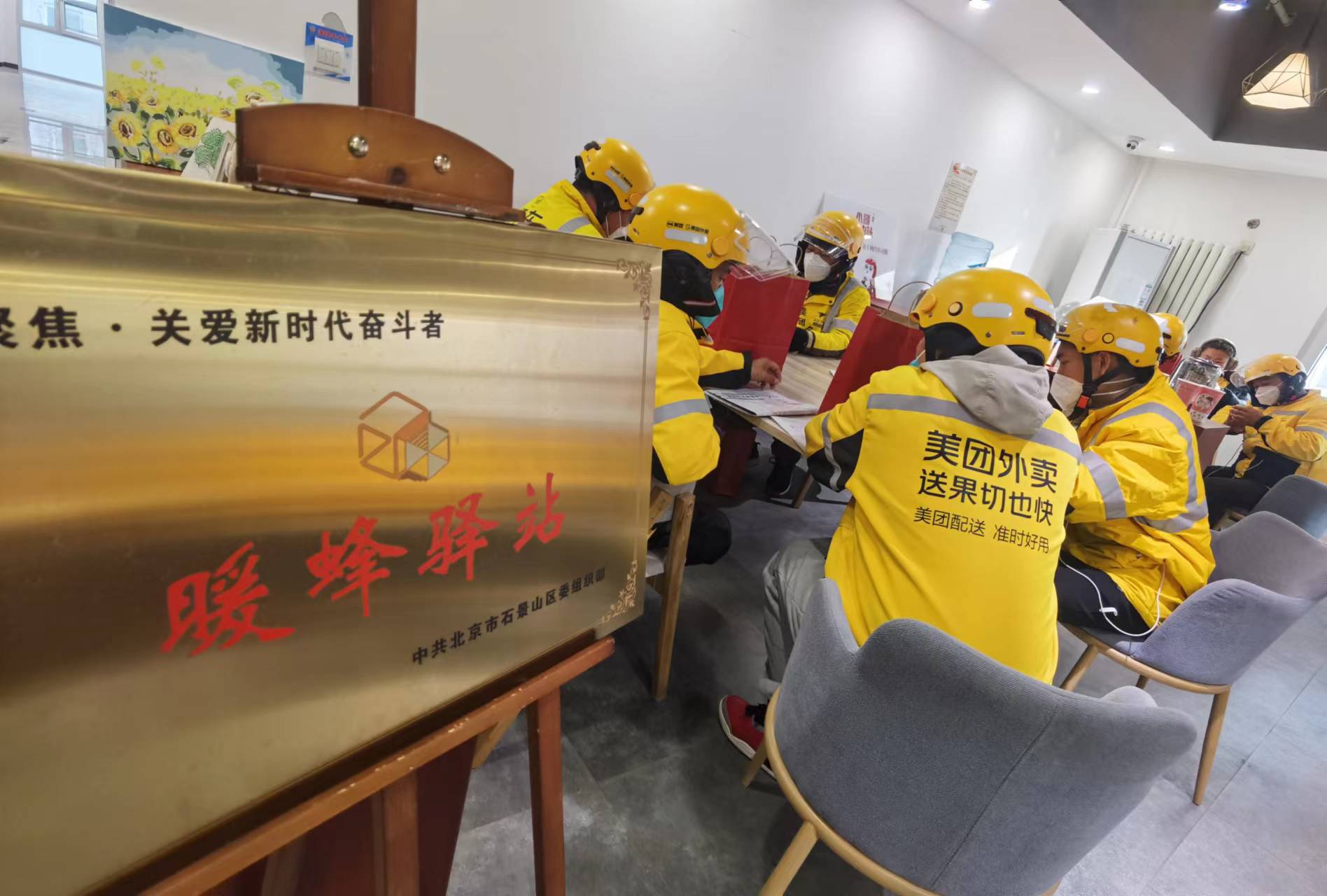 11月3日,石景山区金顶街街道在党群服务中心“暖蜂驿站”慰问京东、顺丰、美团等一线快递人员并赠送围巾、手套等用品,为寒冷冬日里辛勤工作的小哥们增添一份温暖。外卖小哥们在暖蜂驿站品茶、吃泡面、休息,还可以在专业录音棚里录首歌,送给远方的亲人。