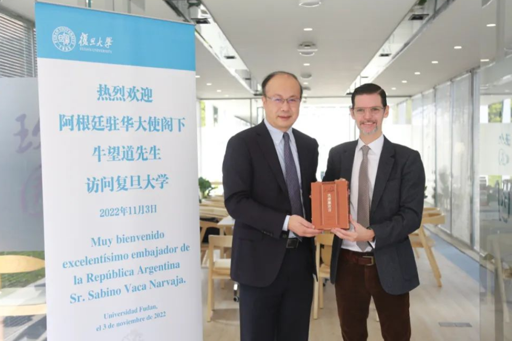 11月3日,阿根廷驻华大使牛望道拜访了复旦大学,并参观了陈望道旧居。陈望道是中国共产党早期党员,翻译了《共产党宣言》首个中文全译本。