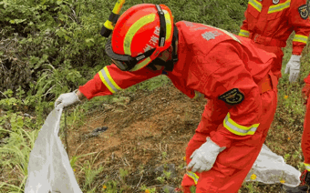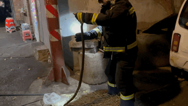 2022年10月,海淀区西北旺镇韩家川村北街8号惊现大蛇。永丰消防救援站消防员赶到现场后,将蛇从电动三轮车底盘中拽出,并放入备好的编织袋内。