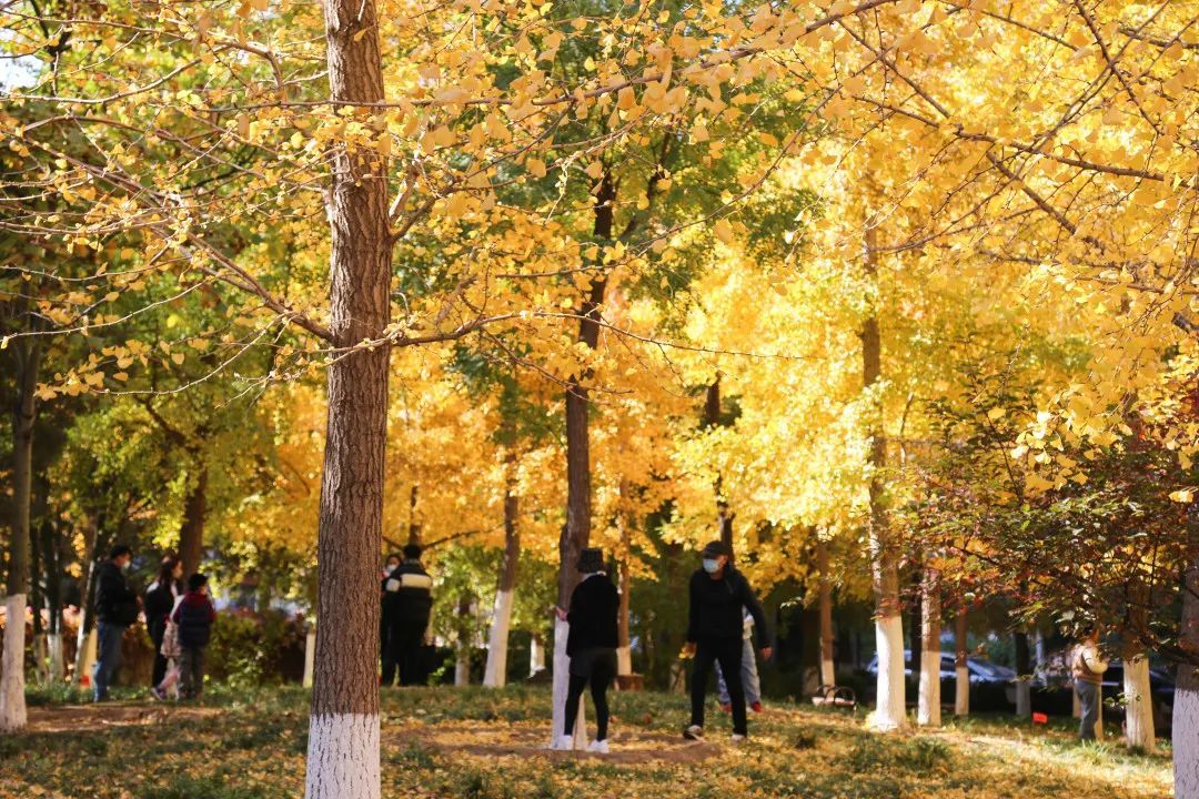 漫步林中,银杏树金黄叶满枝,微风吹过,银杏叶簌簌飘落,这个秋天被点缀得分外迷人。
