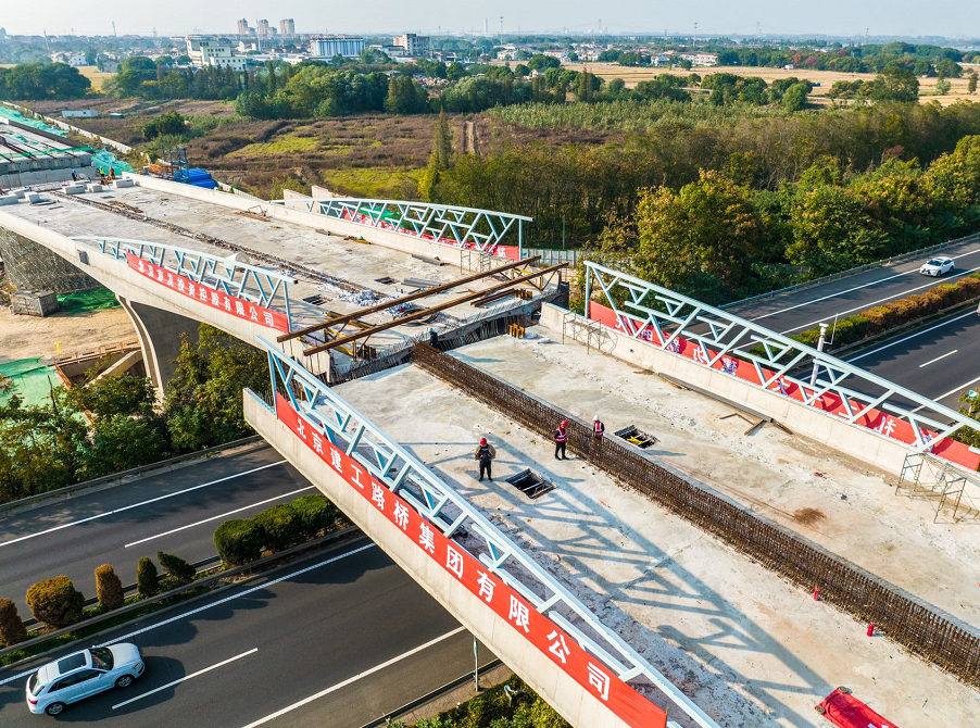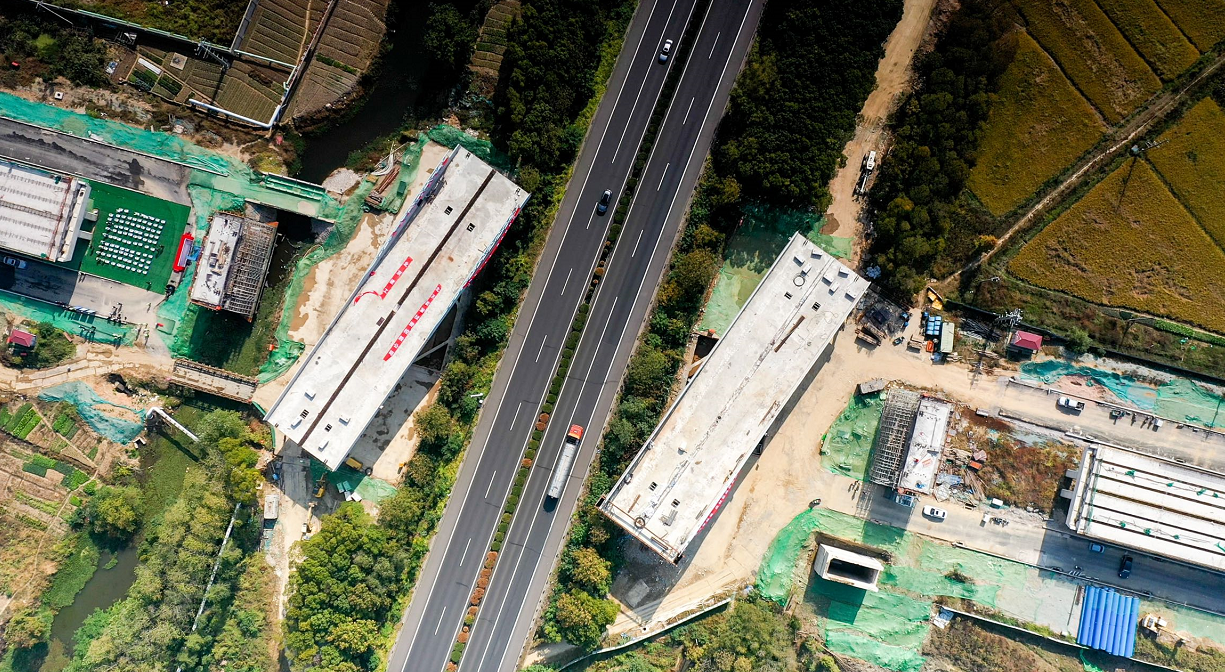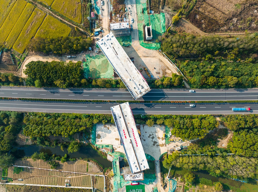 路桥集团选用“先建后转”工艺,先沿高速公路平行方向建设桥体,仅需在转体施工期间做好高速限速等相关措施、在合龙期间短时间封闭快车道即可完成跨线施工,最大限度降低对高速公路通行的影响,其经济效益和社会效益十分显著。