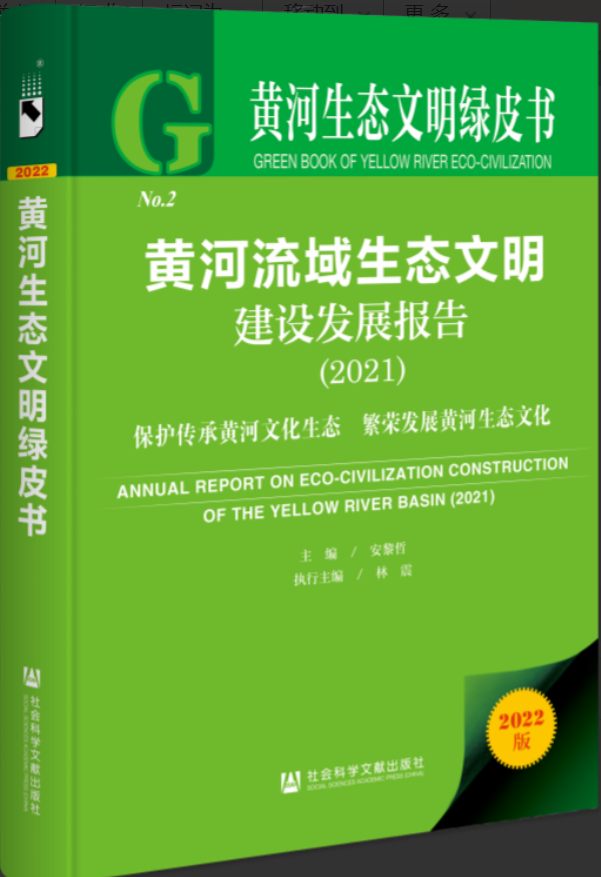 第二部“黄河生态文明绿皮书”《黄河流域生态文明建设发展报告(2021)》以“保护传承黄河文化生态 繁荣发展黄河生态文化”为主题,展现了黄河文化中丰富的生态文化内涵。报告提出,黄河文化背后蕴含丰富元素:水文化、森林文化、古树名木文化、草原文化、沙漠文化、茶文化、玉石文化、中医药文化、人居文化、木结构建筑文化等。应立足黄河流域的石窟艺术、热贡艺术、古代诗歌中的黄河文化、黄河流域的文化旅游等,推动文旅融合发展,打造黄河流域文化发展支柱产业。