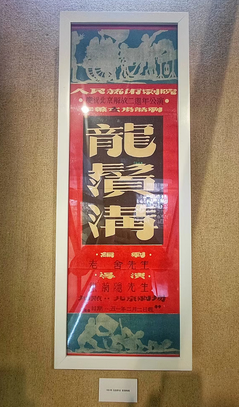 在此次博物馆的新增展品中,就包括一张珍贵的《龙须沟》1951年首演时的海报。当时的海报设计非常简单,醒目的红色背景上印着《龙须沟》三个大字,上下还有舞台效果的剪影图案。值得注意的是,海报上“编剧老舍先生”的字样,印在了“导演焦菊隐先生”之上,足见北京人艺对编剧的重视。