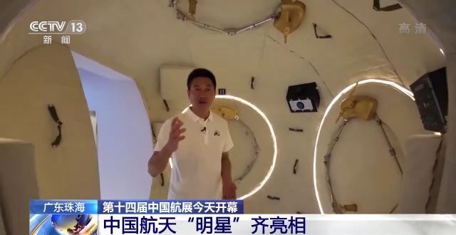 总台央视记者 李宁:航天馆里最大的明星当属我身后的中国空间站三舱组合体。我们知道在不久前太空中三舱组合体刚刚完成了“T”字基本构型的在轨建造,那在本届航展上组合体就以1:1模型的方式呈现在大家的面前。除了我们可以看外观之外,今年有个特别大的亮点就是观众可以亲自登上天和核心舱以及问天实验舱,去近距离地感受空间站之美。