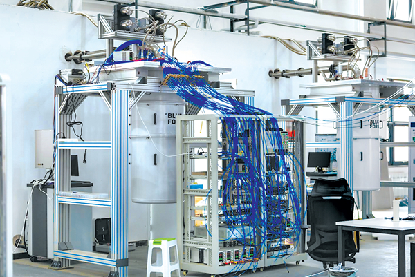 吕力告诉记者,在超导量子计算领域,被业外人士称为“冰箱”的稀释制冷机是必不可少的实验设备。通常根据温区和功能特点的不同,极低温制冷设备可以分为氦4减压降温制冷系统、氦3制冷机、稀释制冷机、核绝热去磁制冷机等不同的系列。一段时期以来,我国用于极低温区科学研究的制冷设备主要依赖进口。