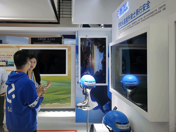在博览会桐乡馆,一辆智能电动自行车站在了“c位”,引来闪光灯无数。据哲轮科技首席运营官侯广辉介绍,这辆智能电动自行车车架均由碳钎维制造,周身仅重15kg,能单手拎起,目前为同类产品中最轻。车身还内置了LED点阵屏、指纹解锁、智能识别声控指令等功能,借助一枚智能传感器实现骑行“千人千面”,为骑行者带来身轻如燕的骑行体验。