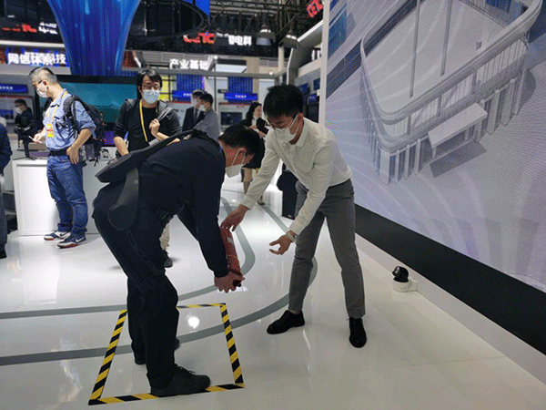 观众现场体验白虹2.0髋关节助力外骨骼机器人。费晓英 摄