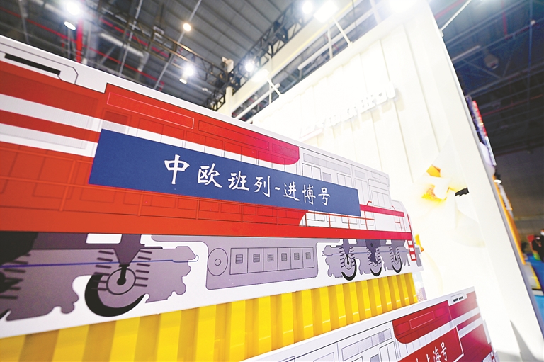 11月6日,中欧班列-进博号抵达上海。这是进博会参展展品连续第2年从德国汉堡搭中欧班列直达上海。图为正在展出的中欧班列-进博号。 (图片来源:视觉中国)