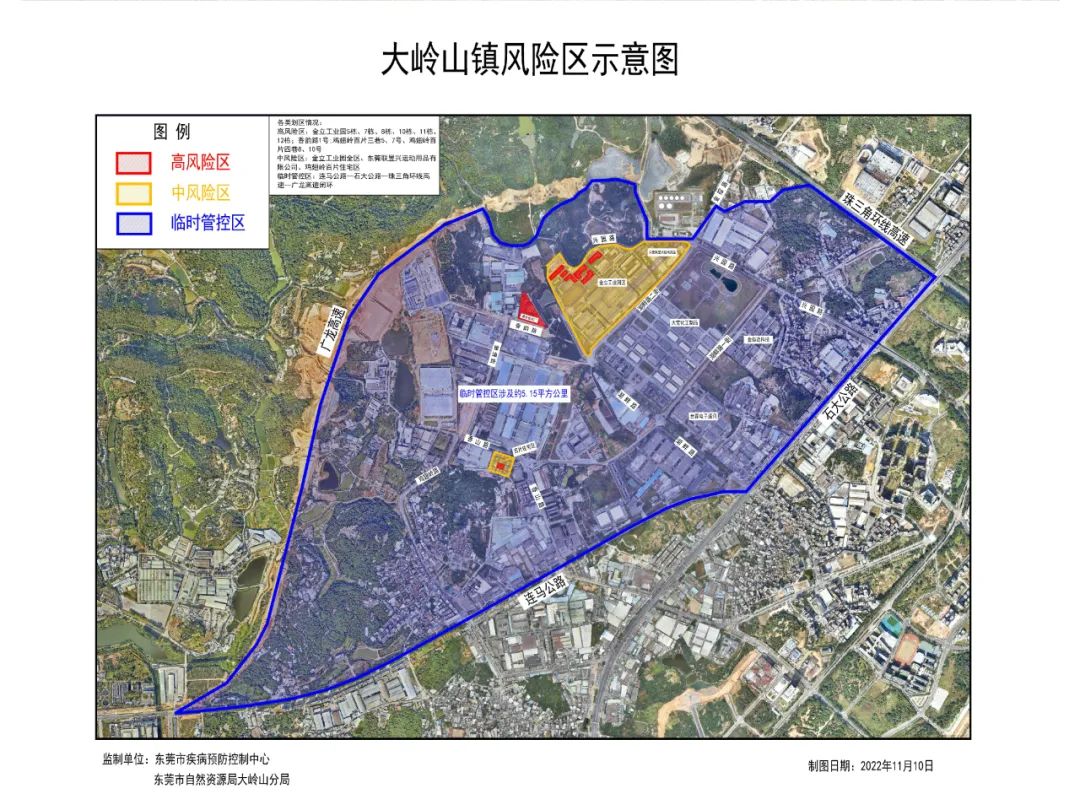 根据当前大岭山镇疫情防控工作需要,按照国务院应对新型冠状病毒肺炎疫情联防联控机制综合组《新型冠状病毒肺炎防控方案(第九版)》和《广东省新冠肺炎本地疫情应急处置方案(第五版)》相关规定,经专家组研判,自11月10日起,大岭山镇调整风险区域如下: