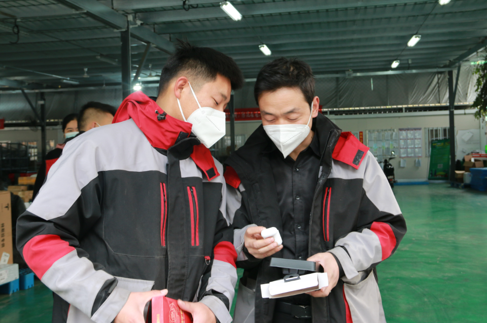 随后,街道工作人员将慰问礼包送到快递小哥们手中。礼包里有御寒的手套和免费理发券,也有便于快递员在骑行过程中接听电话的无线蓝牙耳机。