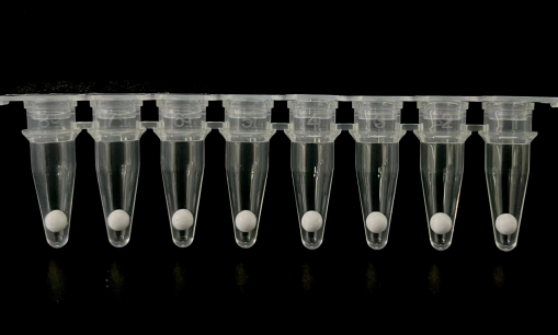 从液体到冻干,看似形态的转换,但背后的技术并不简单。冻干型新冠病毒核酸检测试剂盒基于RT-PCR技术,将扩增反应所用的缓冲液、酶、引物、探针混合到“冻干微球”中,并采用96孔板或八连排管提前预装冻干微球,在使用时无需解冻、配制、分装等步骤,提取后的核酸样本直接加入反应孔中就可进行检测。