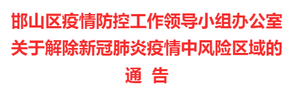 邯郸市丛台区新冠肺炎疫情防控领导小组办公室关于解除新冠肺炎疫情中风险区域的通告