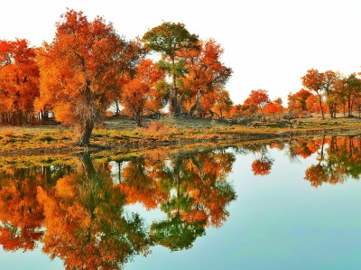 新疆尉犁县境内塔里木河两岸的胡杨林秀美如画。王汉冰摄/光明图片