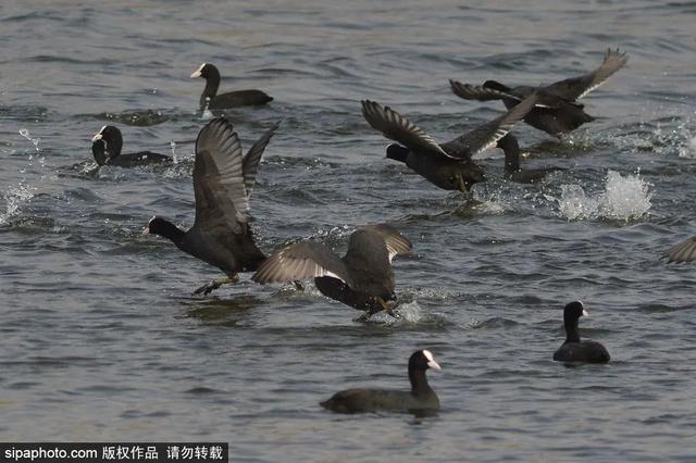 白骨顶鸡、鸬鹚、红头潜鸭在水中嬉戏,留鸟在安稳生活,候鸟在稍作休息为迁徙储备能量,处处呈现出一派自然和谐的画面。