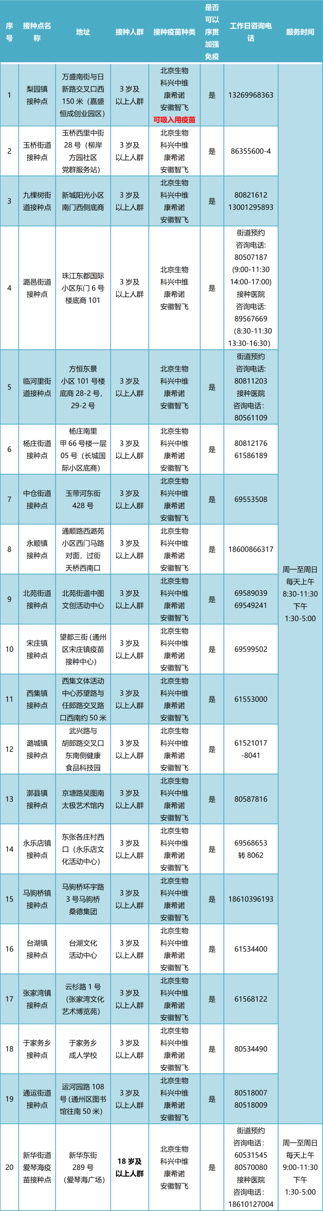 截止到11月16日,北京东城、西城、朝阳、海淀、丰台、昌平、通州、顺义、大兴、石景山、怀柔、密云、经开区等多区可预约接种“吸入式”新冠疫苗。地点、时间、联系电话,一文汇总——