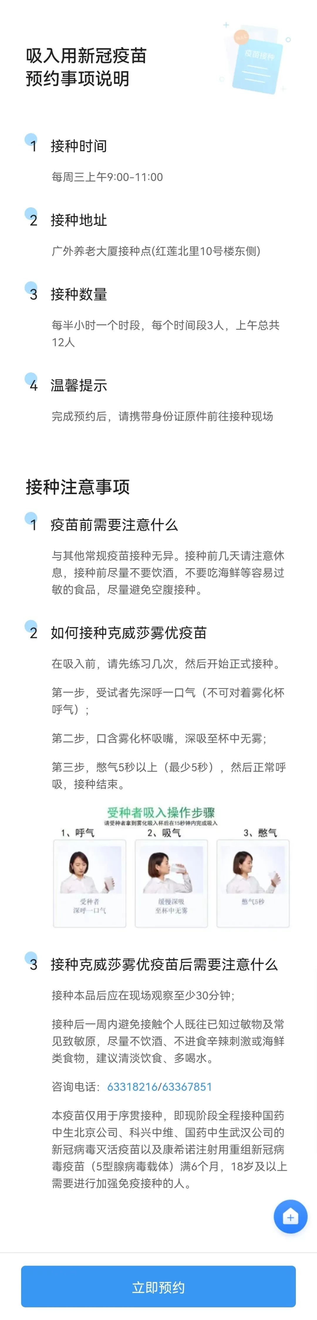 可电话预约接种吸入式新冠疫苗