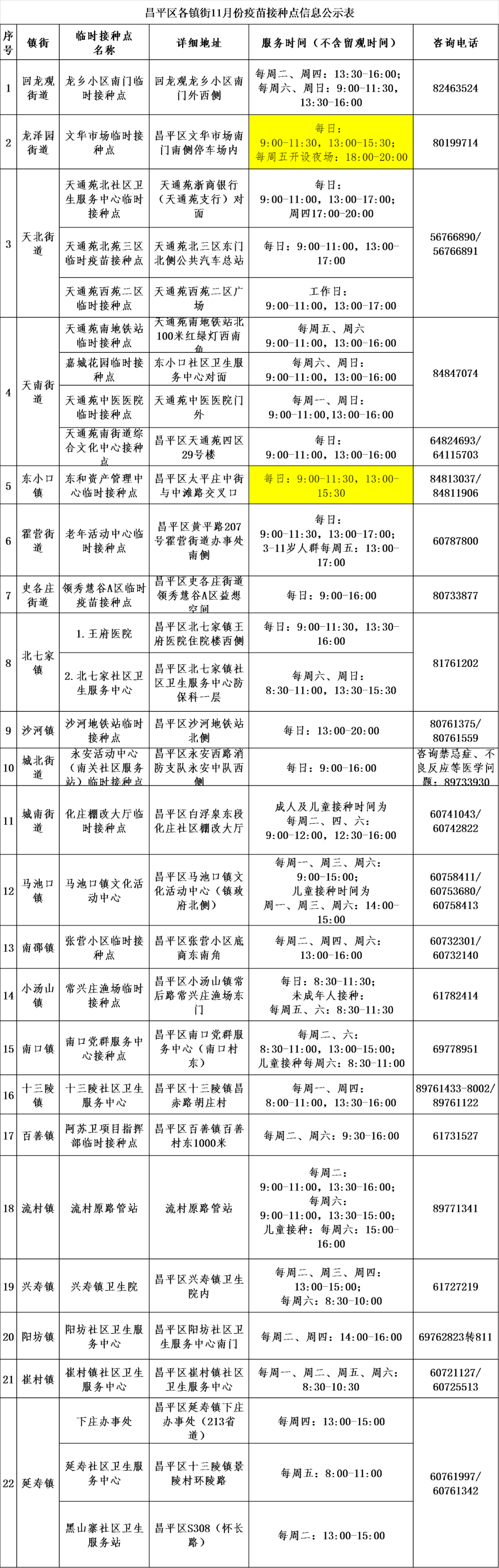 昌平区新冠疫苗接种点信息公示