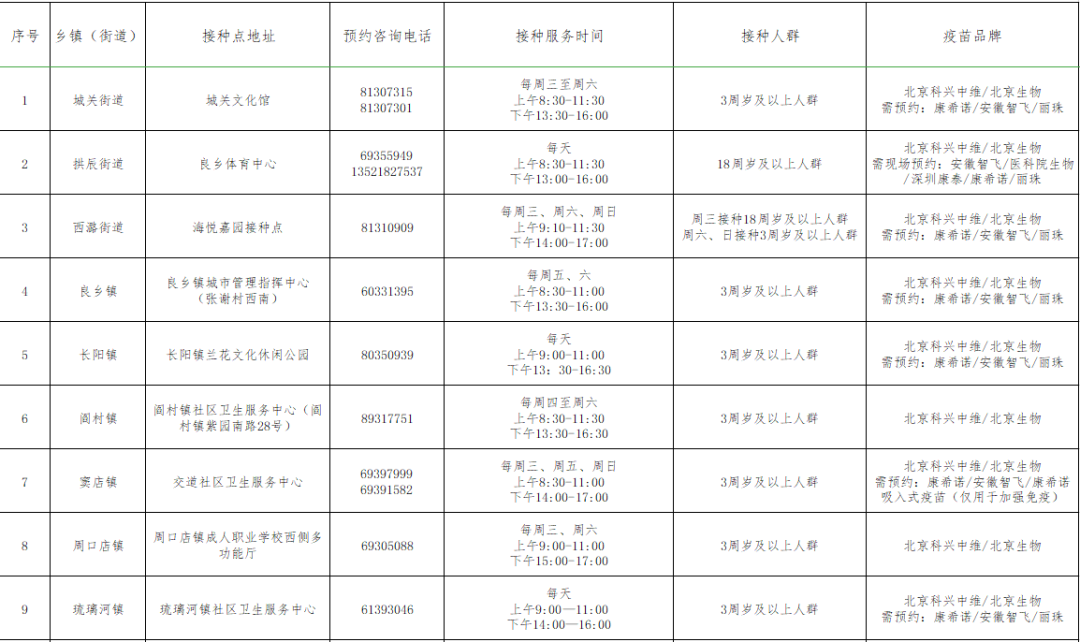 所有接种点均无需预约,携带本人身份证前往即可接种。因疫情防控原因,点位可能存在动态调整。详情可拨打电话咨询(咨询时间同接种时间)。
