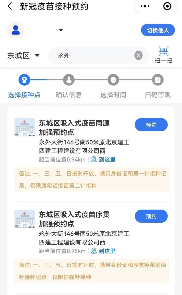 预约方式为登录“健康海淀”公众号,点击疫苗接种或现场预约。与此同时,上地街道新冠疫苗接种点之外,花园路街道新冠疫苗接种点自11月25日起,可以进行吸入式接种。