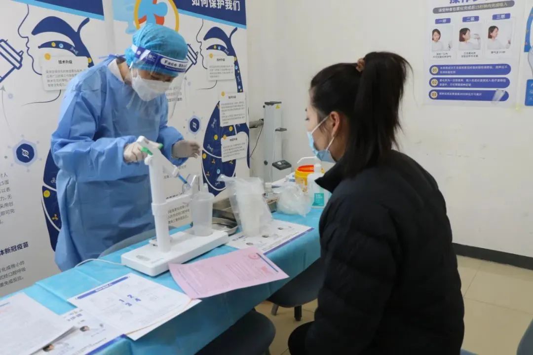迎来了首批接种吸入用新冠疫苗的居民