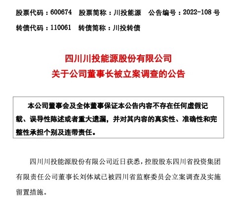 川投能源表示,尚未知悉留置调查的进展及结论,目前该事项不会对公司日常经营活动产生重大影响。除刘体斌外,公司其他全部董事、监事、高级管理人员目前均正常履职。