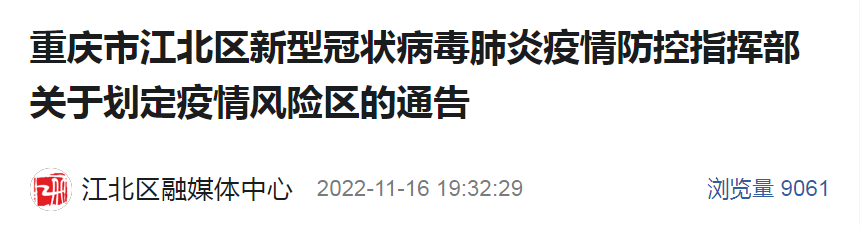 重庆市江北区新型冠状病毒肺炎疫情防控指挥部关于划定疫情风险区的通告(2022年第69号)。