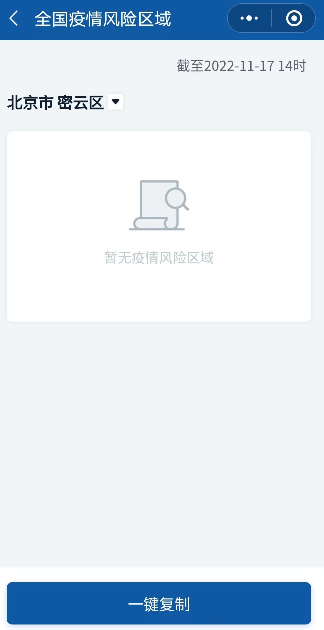 据国务院客户端小程序11月17日14时统计数据显示,北京平谷区、密云区已无高、低风险区。