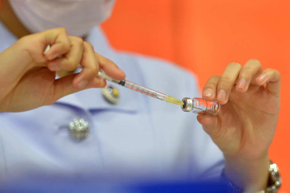 2021年5月12日,医护人员在泰国曼谷为民众接种中国科兴新冠疫苗。新华社发(拉亨摄)