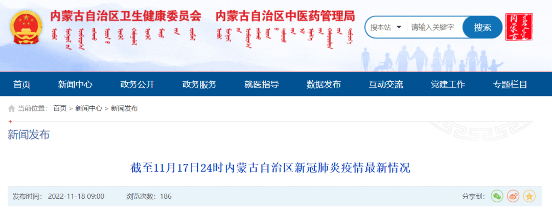 11月17日0—24时,内蒙古自治区报告新增本土确诊病例112例,其中呼和浩特市81例(含5例由无症状感染者转为确诊病例)、呼伦贝尔市1例(系无症状感染者转为确诊病例,在海拉尔区)、鄂尔多斯市30例(康巴什区2例、伊金霍洛旗28例)。