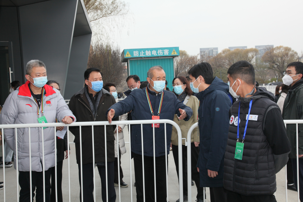 图为2021年11月奥运村运行保障组组长、市人大常委会主任李伟实地检查冬奥村建设运行工作。