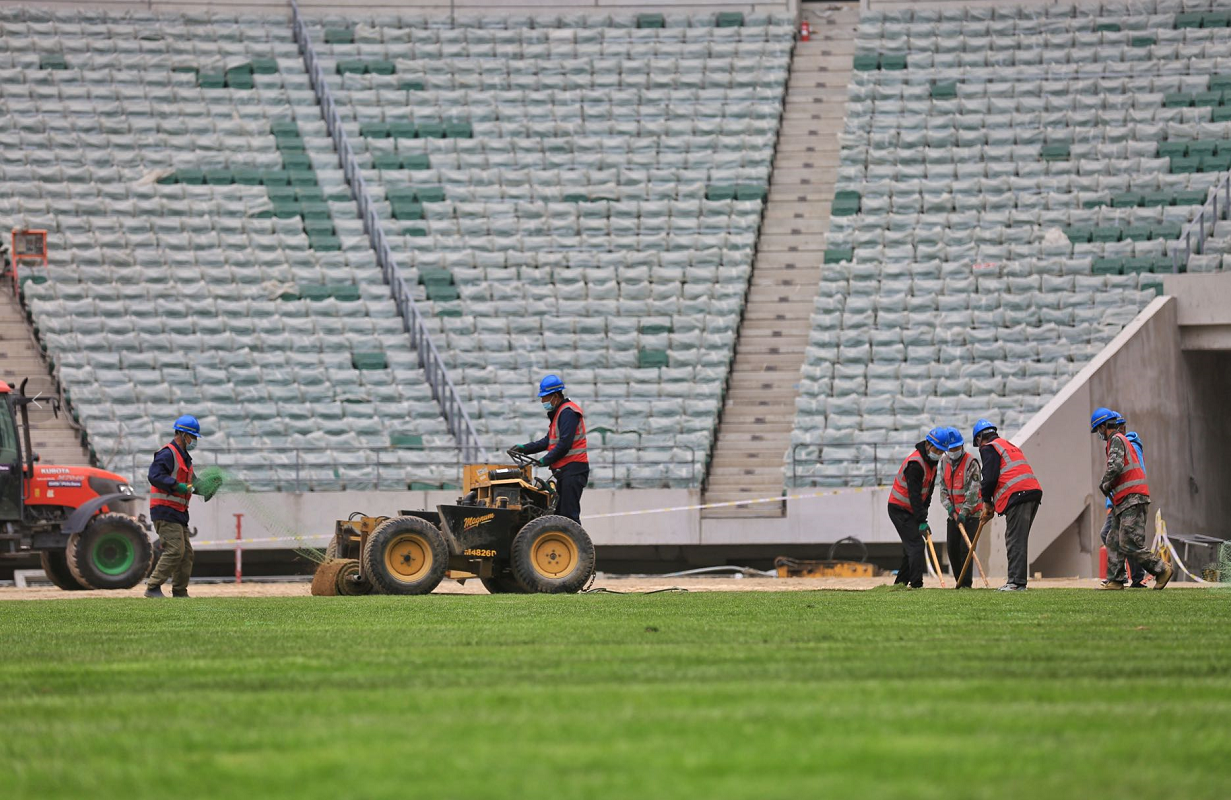 北京“新工体”建设向着冲刺目标又前进了一步。11月18日,7700平方米的草坪铺设完成,“工体碗”绿草成茵。“新工体”的草坪充满科技含量,一站式解决了通风、光照、排水、供暖等难题,可以四季常青。