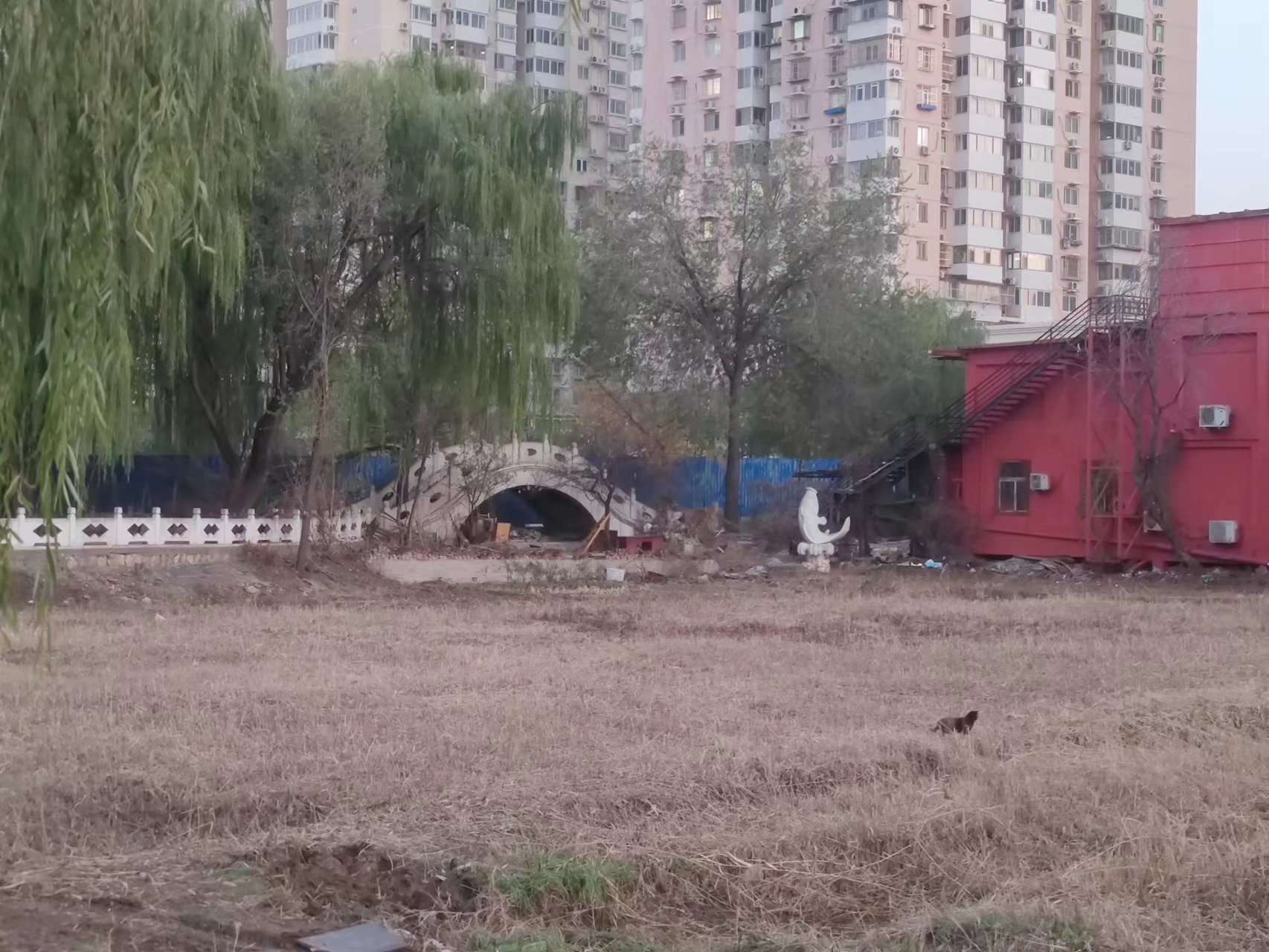 石桥也成了摆设,旁边堆放着一些废旧家具,并且还有一道铁门阻隔,根本无法靠近。